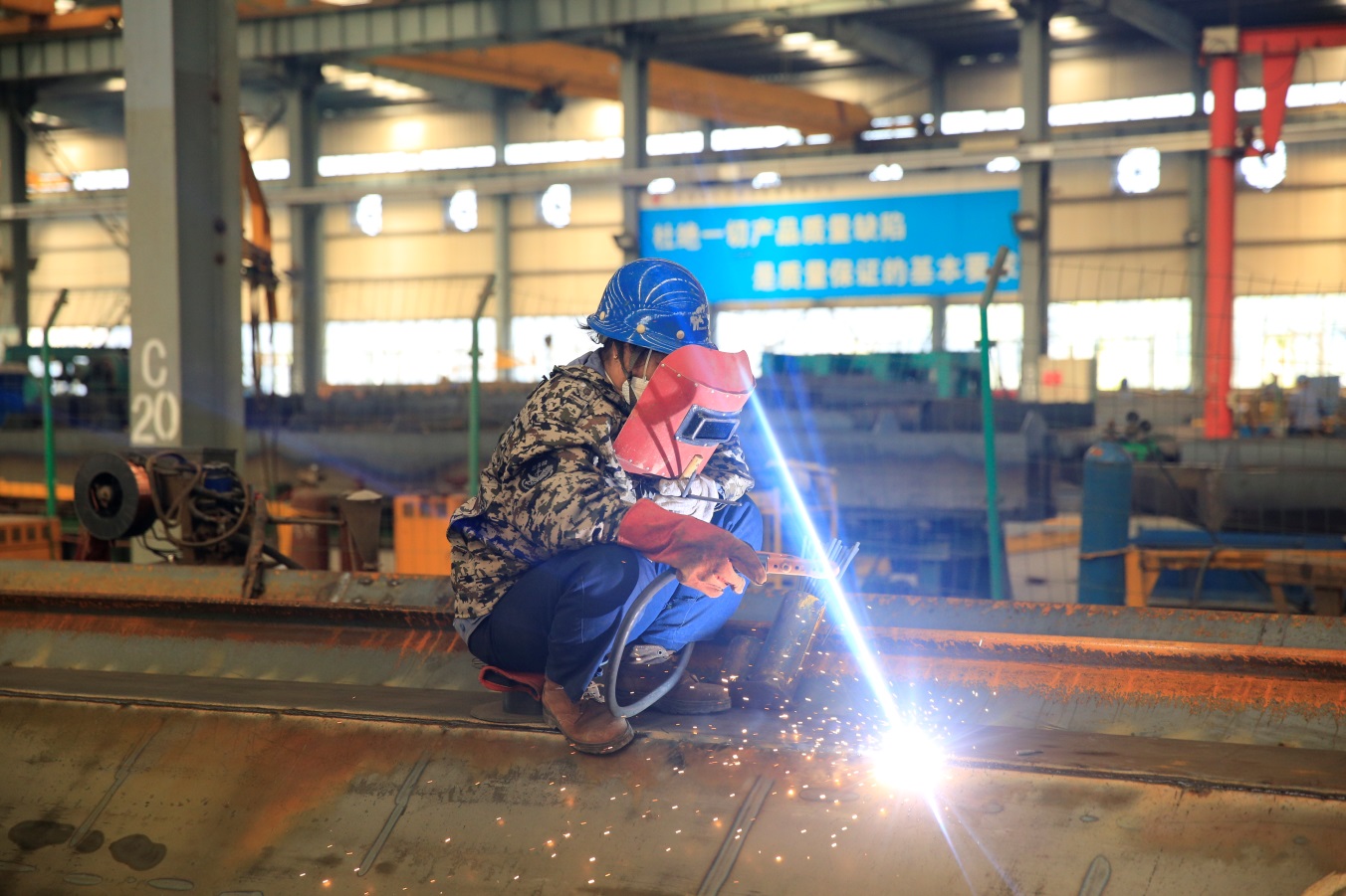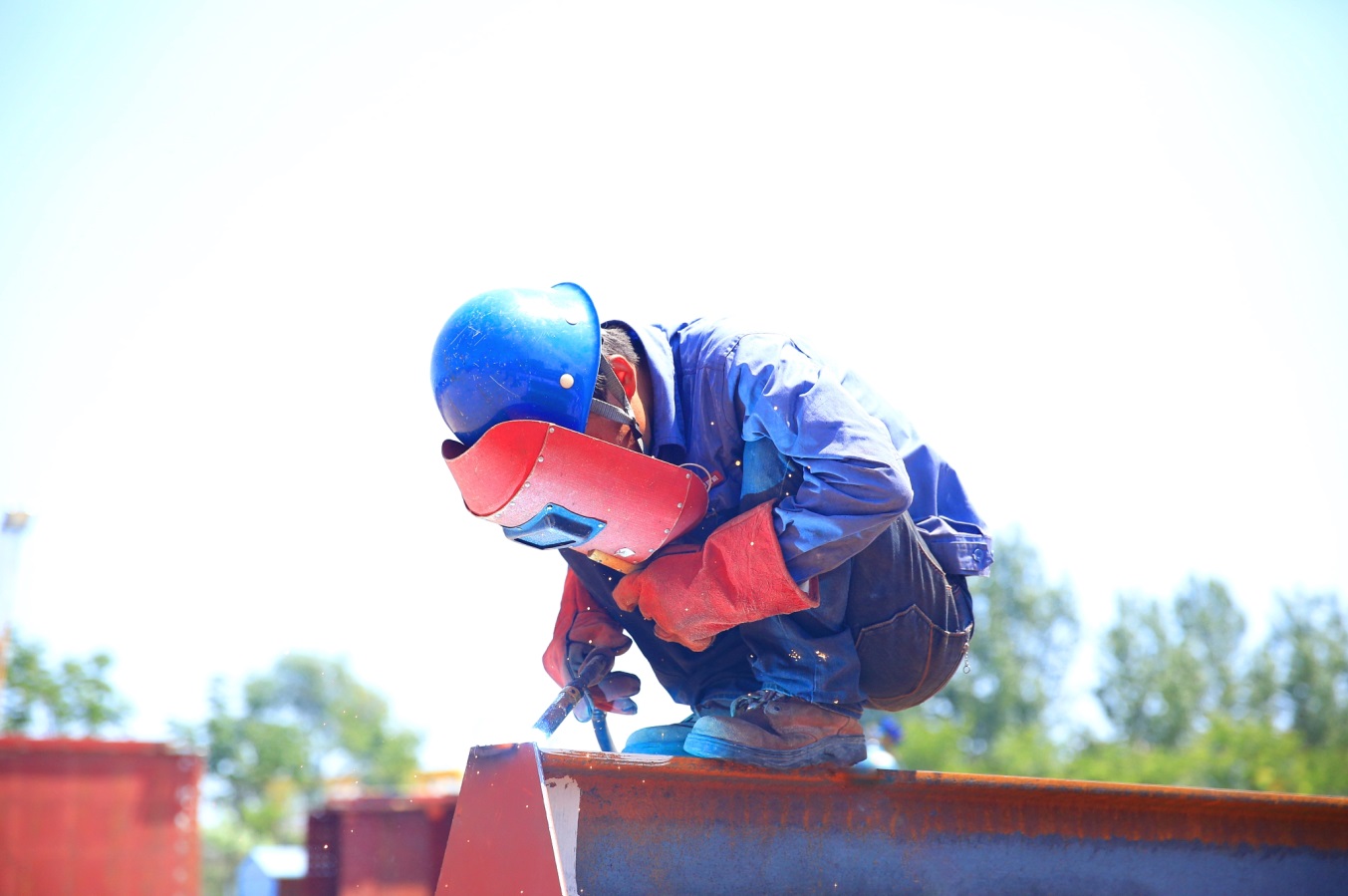 7月10日,筆者卷著熱浪走進他們,去探索那酷暑難耐而他們卻依然堅守的秘密。下午3時許,筆者首先來到了雙梁五班,烈日當頭,燥熱的天氣感覺快要讓人窒息,可是過來一看,仍然有那么多大方人“全副武裝”奮斗在生產(chǎn)一線,有條不紊的開展著自己的工作,任滾滾熱浪任意肆虐,對他們而言卻是心靜自然涼。筆者慢慢的走近他們,發(fā)現(xiàn)他們衣服早已被汗水浸濕,汗水順著帽檐向下滴落,落在地上、落在梁盒上、落在工件上、落在水平儀上,工作的繁忙讓他們無暇拭去臉上的汗水,只有當汗水流入眼睛無法睜開雙眼時他們才用自己的袖子輕輕的一抹,然后又全神貫注的投入到自己的工作中。看到此時此景,不由的有種敬仰之情涌上心頭,筆者被他們這種頑強的意志和一絲不茍的工作態(tài)度深深的折服。